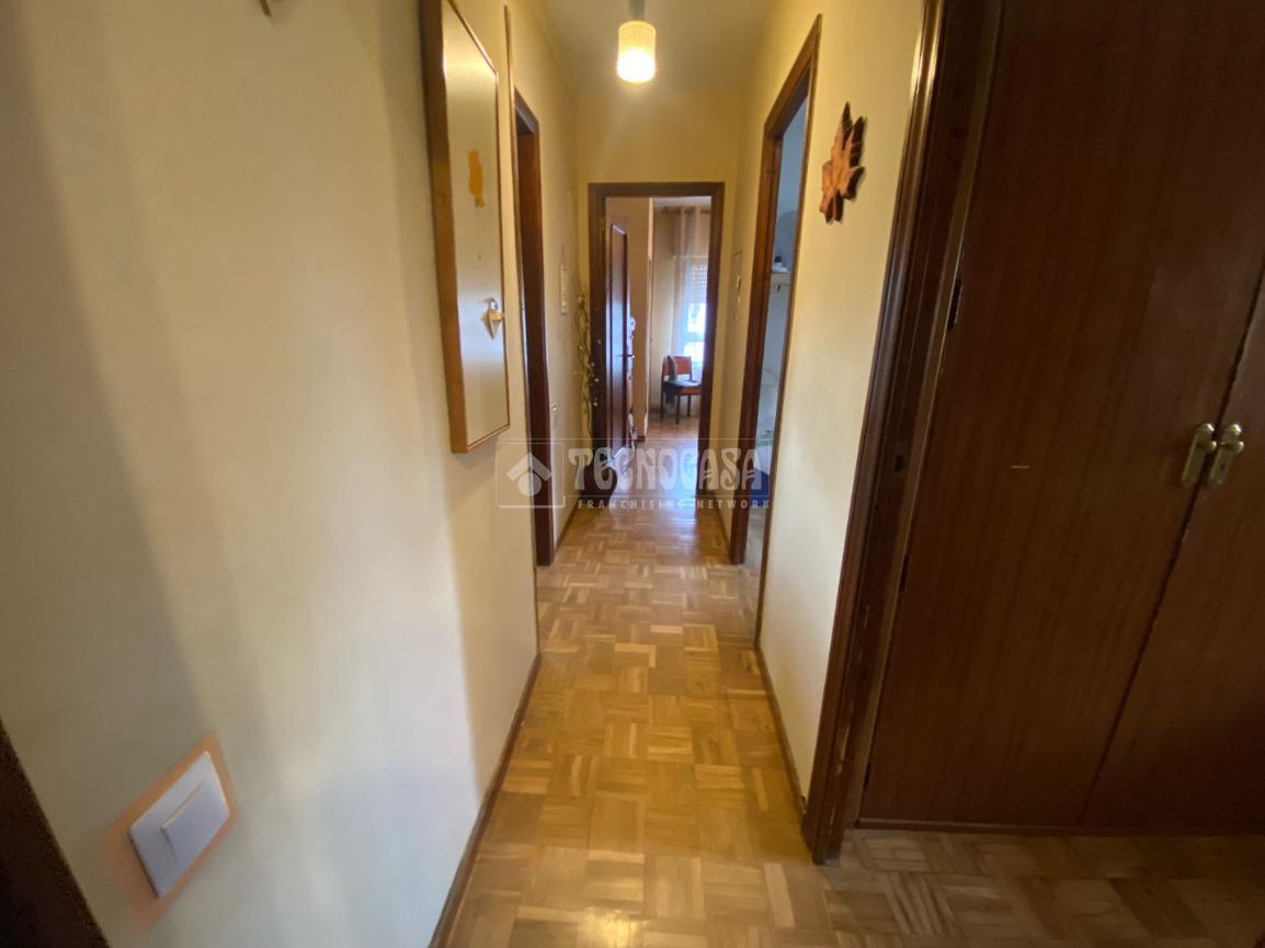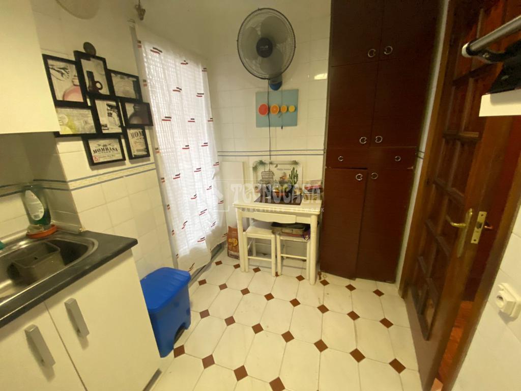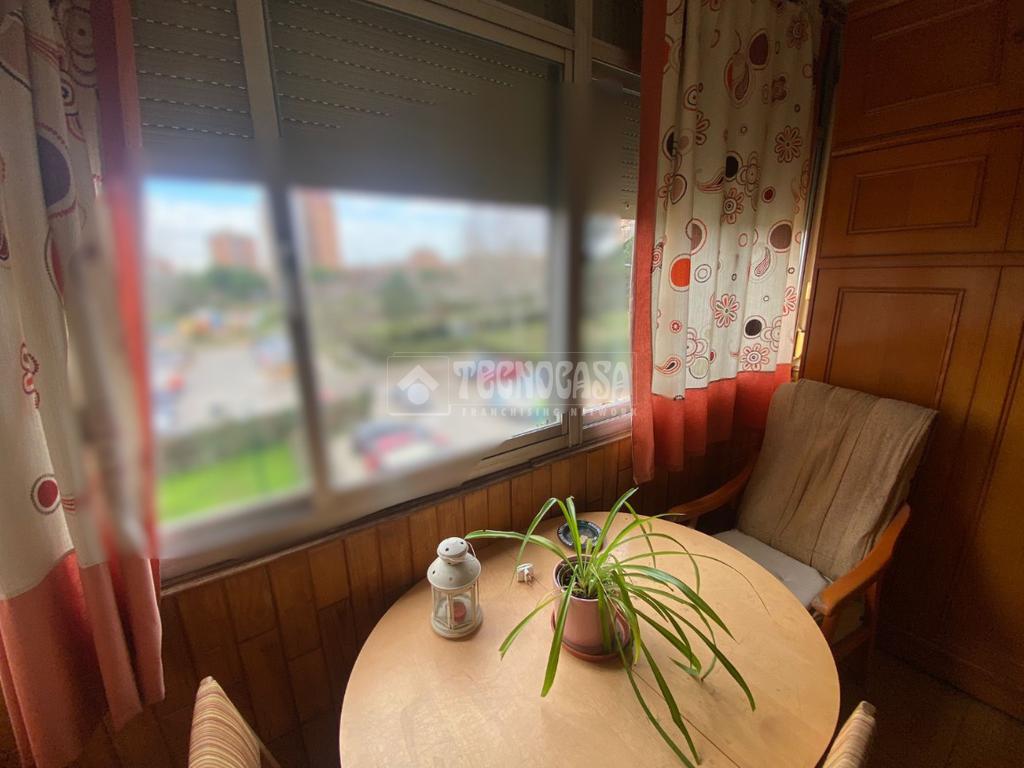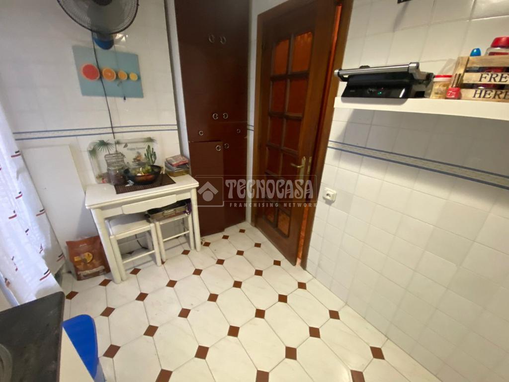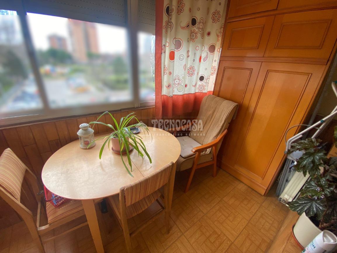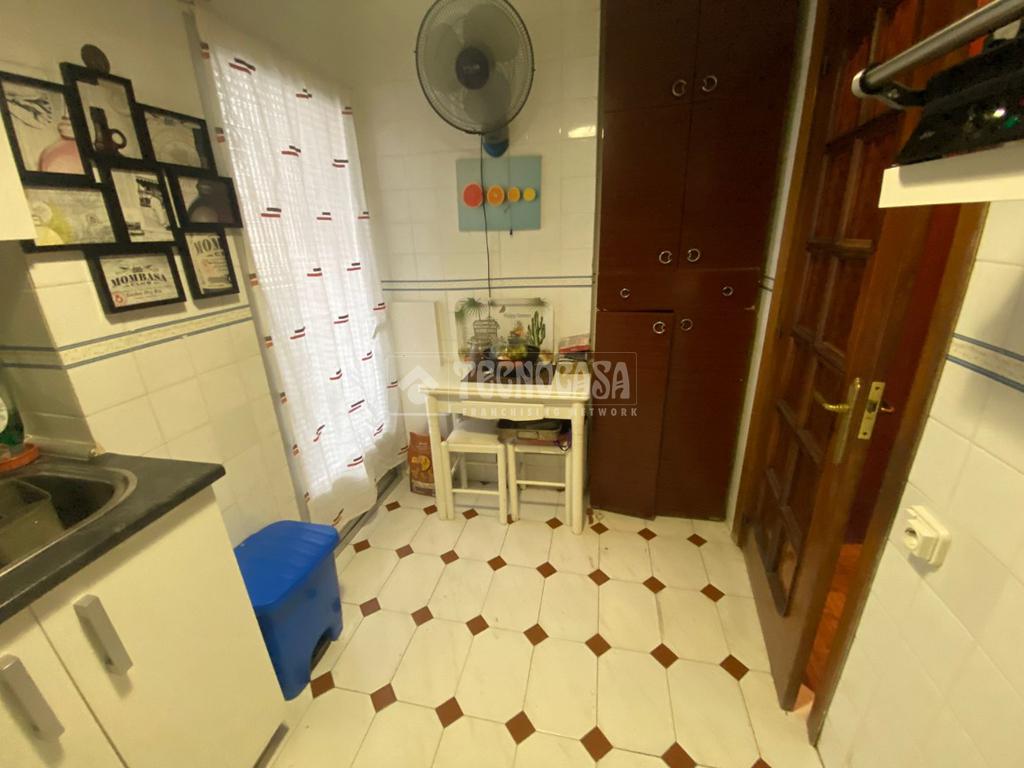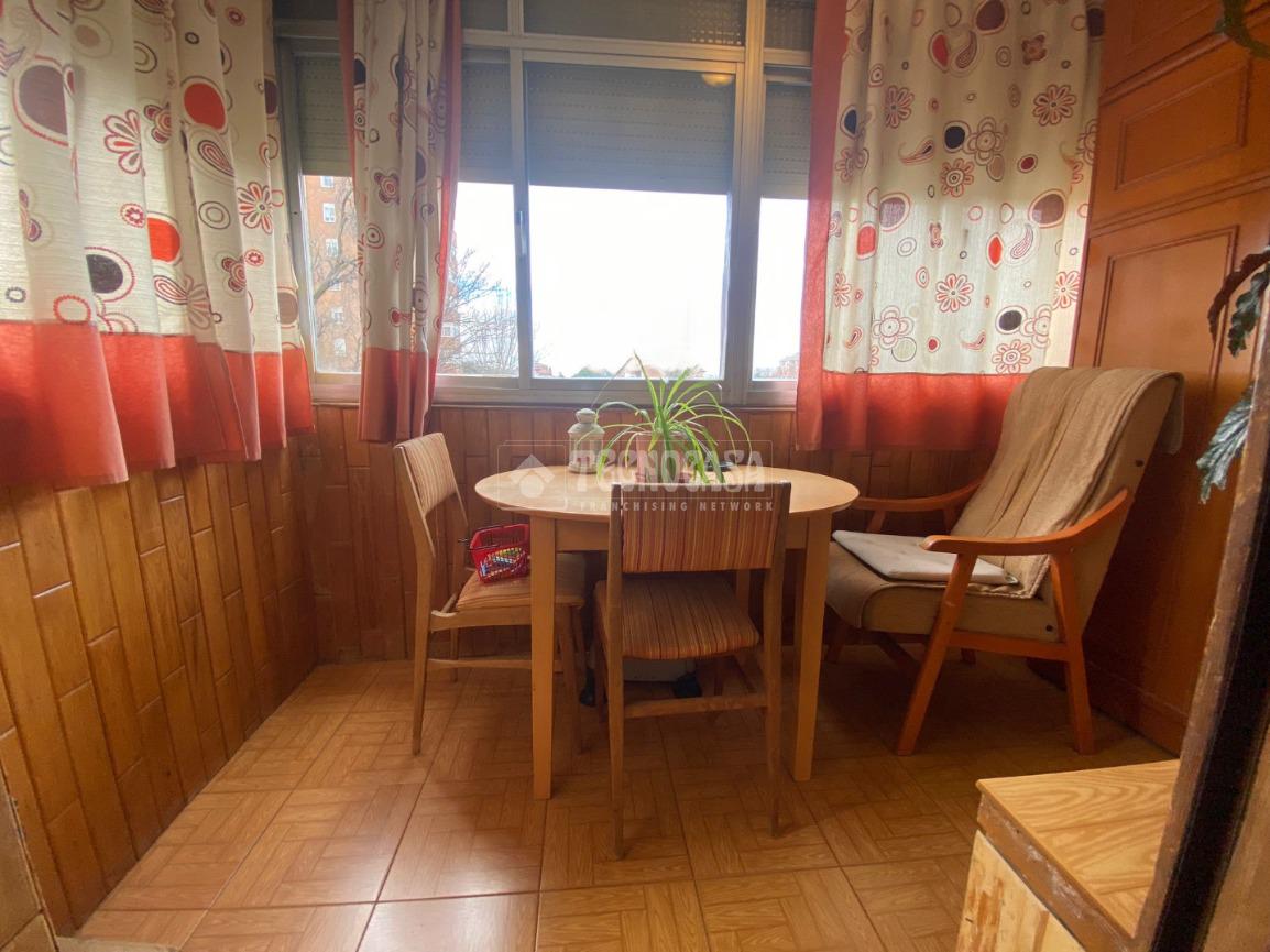 El piso se distribuye en hall de entrada, amplio salón-comedor de aproximadamente 18 m² con acceso a una terraza cerrada, cocina independiente en buen estado con salida a tendedero/lavadero, tres dormitorios exteriores y un cuarto de baño completo con plato de ducha y ventana.