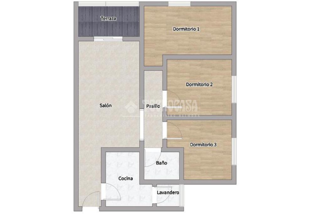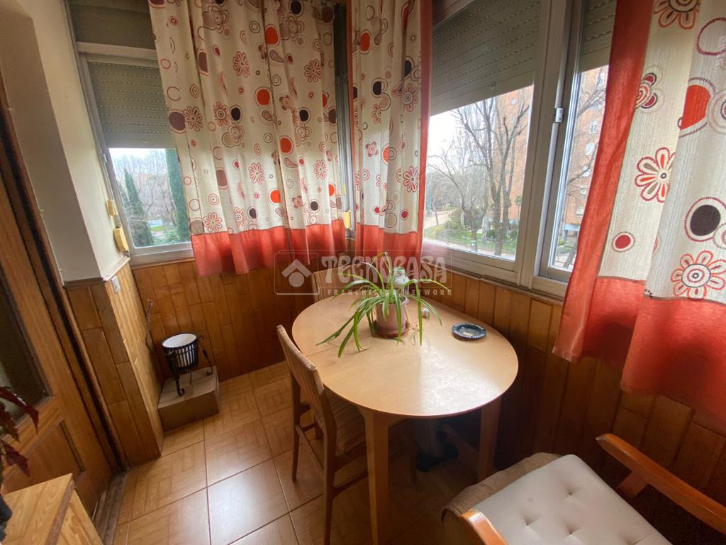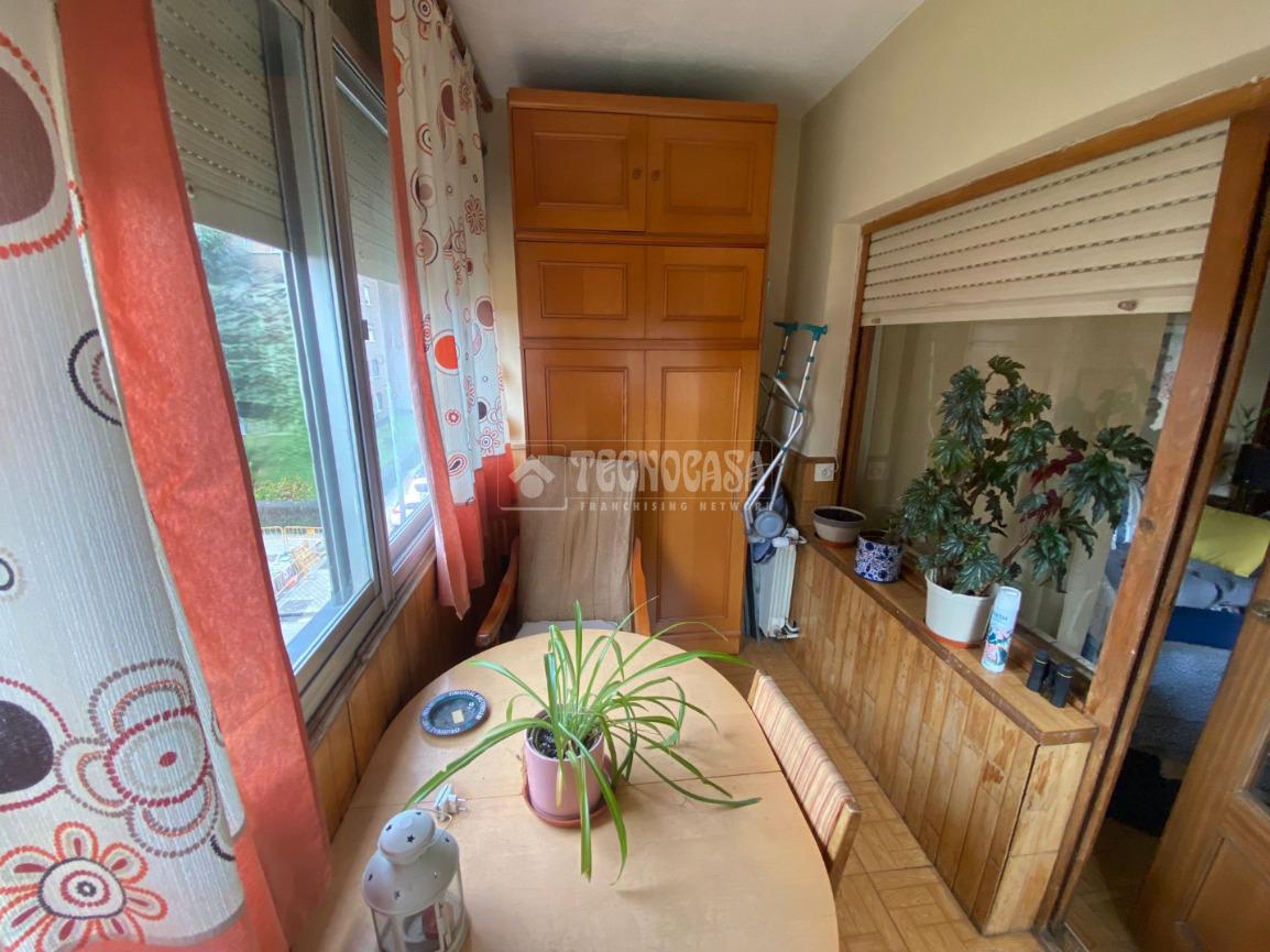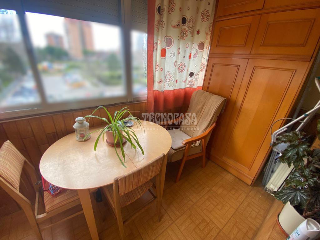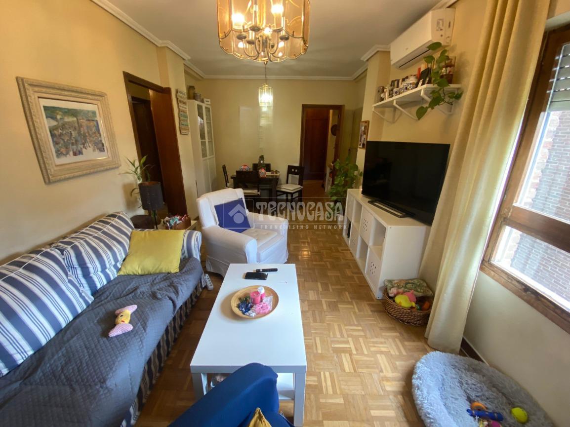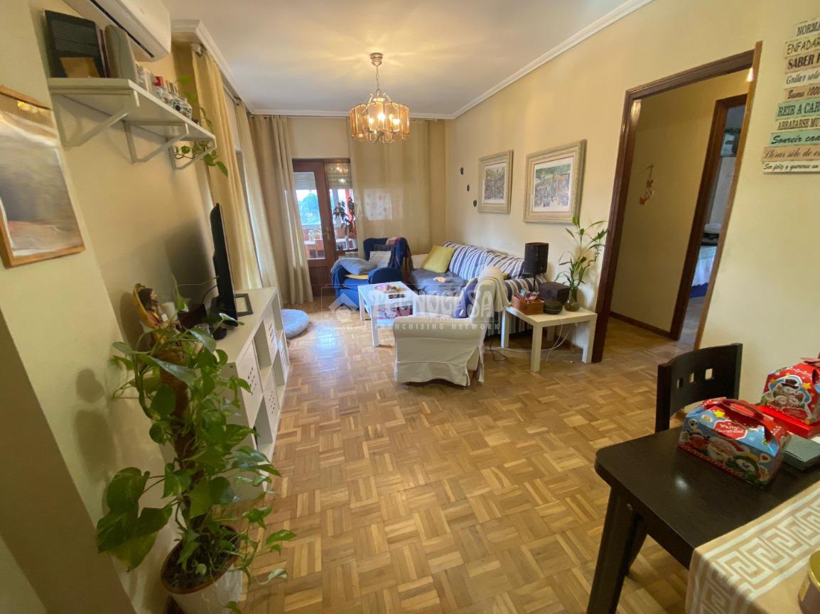 El piso se distribuye en hall de entrada, amplio salón-comedor de aproximadamente 18 m² con acceso a una terraza cerrada, cocina independiente en buen estado con salida a tendedero/lavadero, tres dormitorios exteriores y un cuarto de baño completo con plato de ducha y ventana.